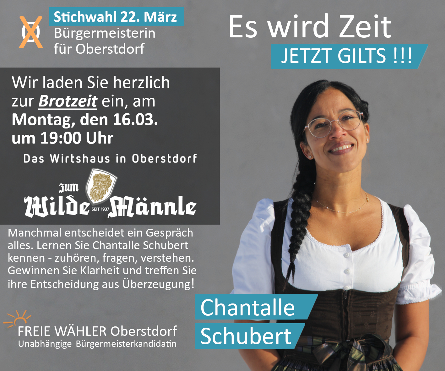 Lernen Sie Chantalle Schubert und die Kandidaten der Freien Wähler Oberstdorf in kurzen Gesprächsrunden persönlich kennen.